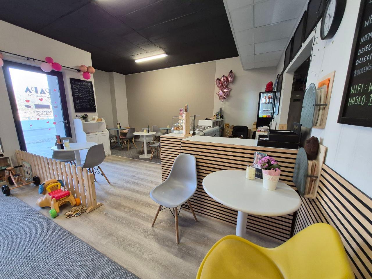 Zadbaliśmy też o dorosłych 💛 W bawialni jest przytulna strefa z wysokimi stolikami, gdzie można napić się kawy lub herbaty, zjeść przekąskę i obserwować zabawę dzieci.