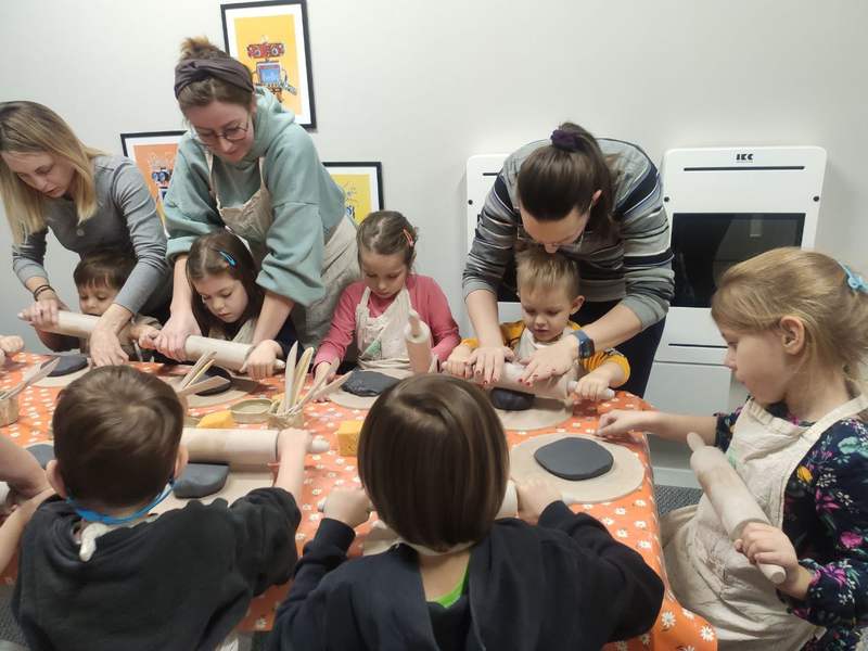Kreatywne warsztaty ceramiczne dla dzieci w Krakowie. Lepienie z gliny, własnoręcznie wykonane prace oraz godzina darmowej zabawy w bawialni. Kameralne zajęcia pełne radości, twórczości i dobrej zabawy.